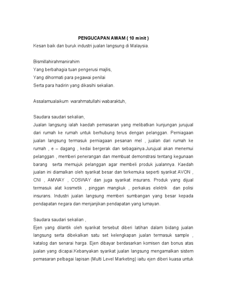 262017 Perkembangan itu secara tidak langsung menggusarkan Persatuan Edaran Langsung Malaysia MDDA mewakili syarikat-syarikat jualan langsung yang beroperasi secara sah di Malaysia. Hal ini menunjukkan bahawa industri jualan langsung mempunyai potensi besar untuk terus berke maju dan industri ini terbuka untuk sesiapa sahaja yang sanggup berusaha. Di Malaysia satu daripada pasaran sasaran Syarikat MLM sudah satu bentuk diterima secara meluas perniagaan dengan cara sendiri menggerakkan produk atau perkhidmatan untuk menjana jumlah jualan perniagaan.
